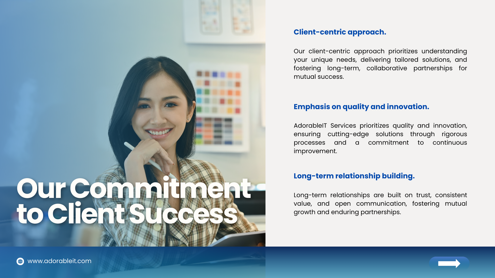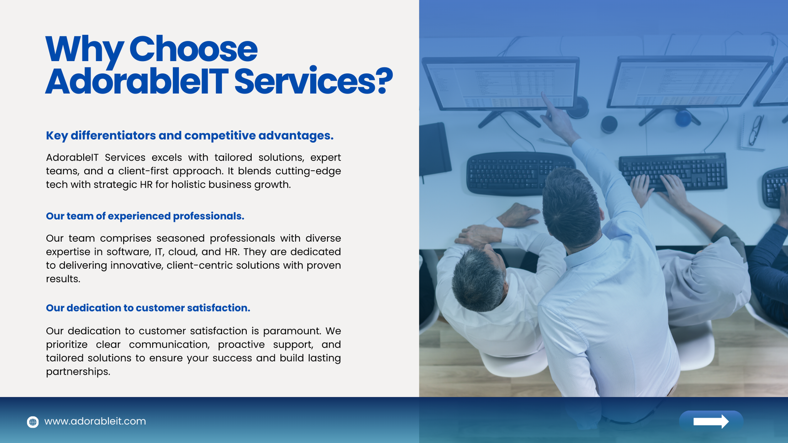 At AdorableIT Service, we are committed to making your technological dreams a reality. With a love for technology and a passion for quality, we provide a variety of services that address all your technological needs.