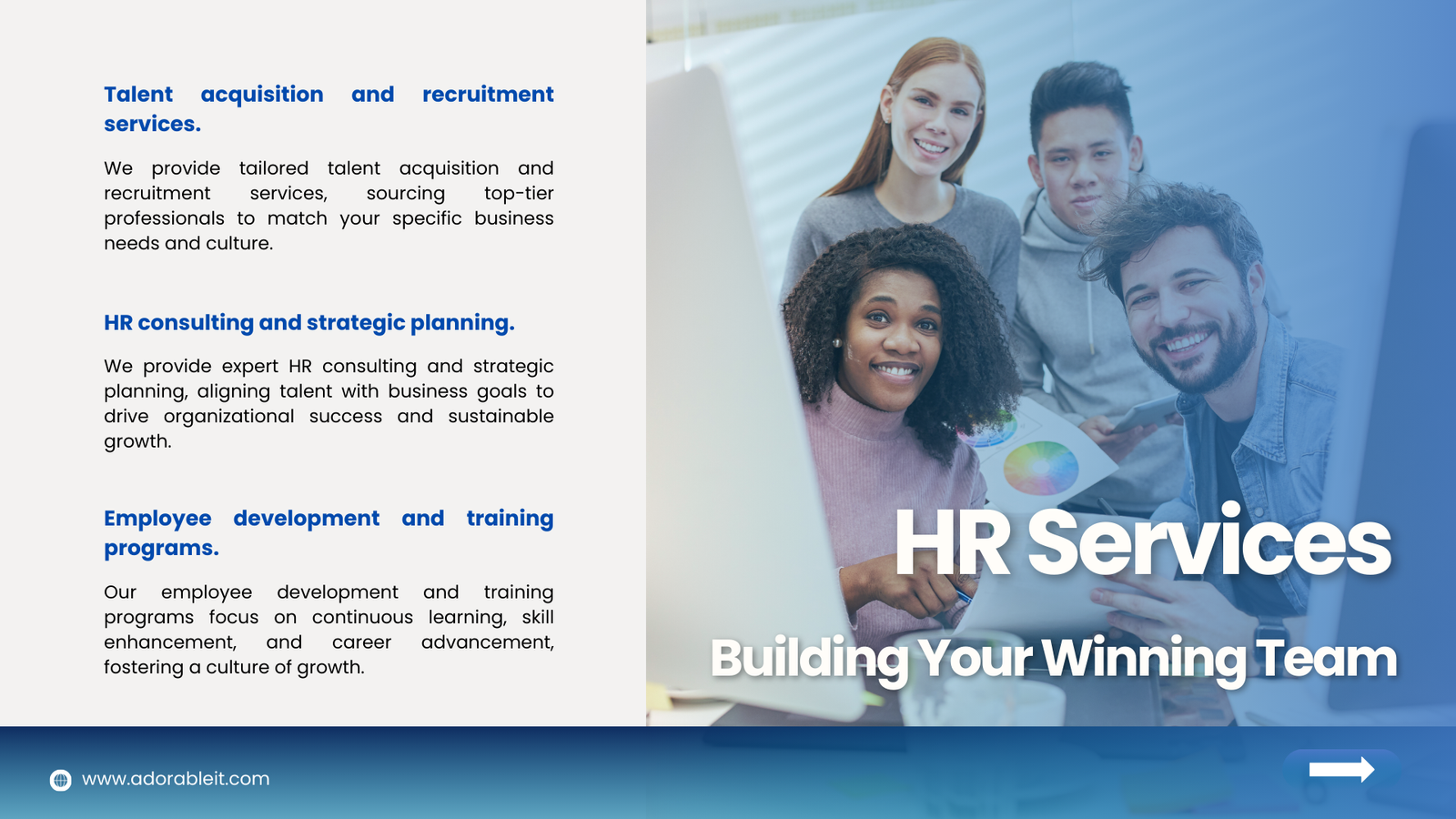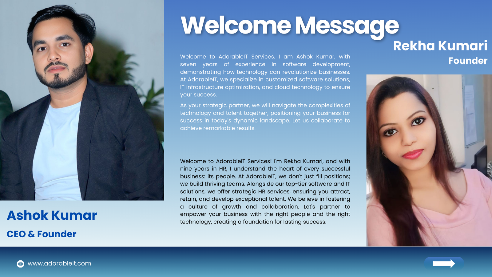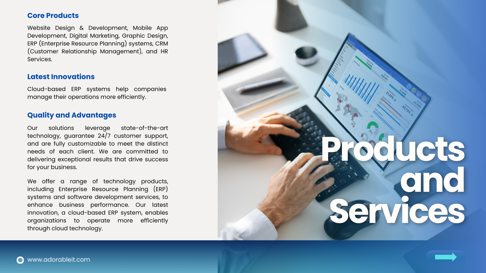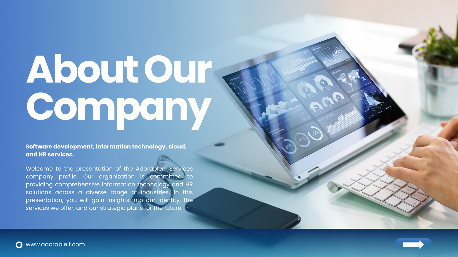 AdorableIT Services is your one-stop, all-service IT provider. We provide Web Development, App Development, UI/UX Design, Graphic Design, Digital Marketing, and ERP/CRM Development. Our mission is to empower your digital success with tailored solutions, quality, and innovation.